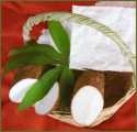Lavar folhas de bananeira, cortar em quadrados de 20 cm e passar em água quente. Colocar a massa nas folhas e embrulhar como canudos.