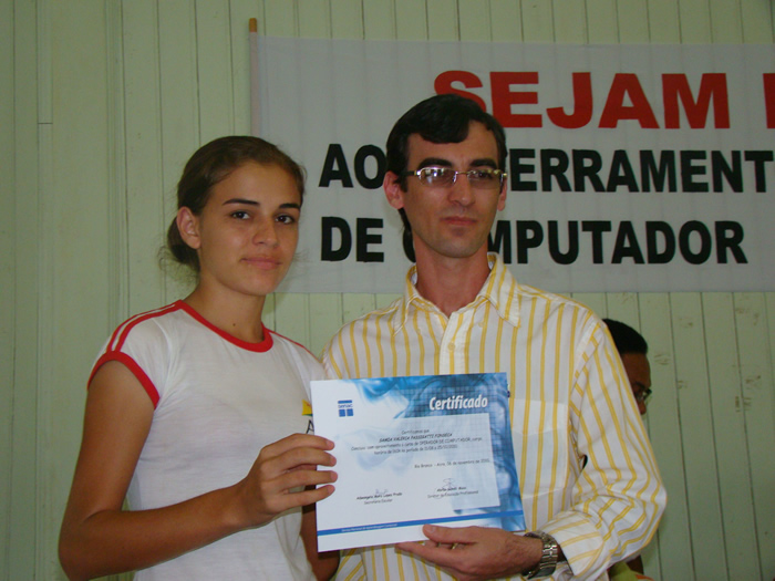 Na manhã de segunda-feira (8) novembro de 2010, aconteceu no Centro de Cultura e Florestania Raimundo Nonato da Rocha, o encerramento do Curso de Operador de Computador ministrado pelo Serviço Nacional de Aprendizagem Comercial – SENAC, o evento contou com presença do Prefeito José Ronaldo, Diretor de Educação Profissional do SENAC, Abrão Maia, Coordenadora Pedagógica, Maria do Socorro Lima, Secretaria de Cidadania e Ação Social, Primeira dama Rosália Pinheiro e o Presidente da Câmara de vereadores, Daniel Dozila eles fizeram a composição da mesa.